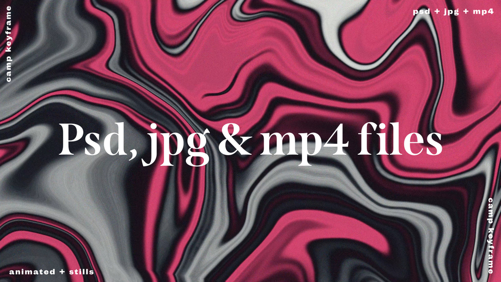 After Effects files, JPGs, PSDs and MP4s, all in colour and black and white.